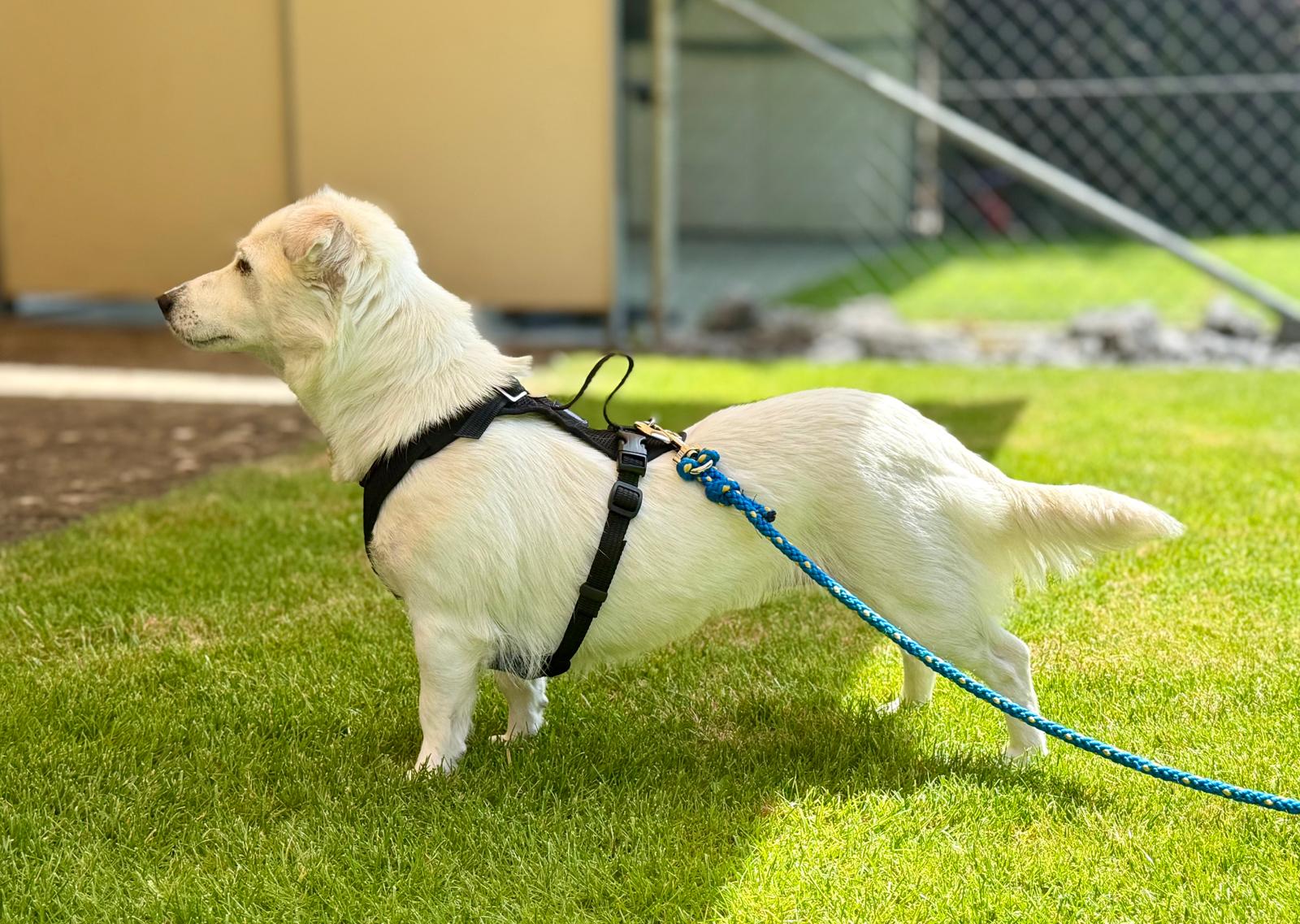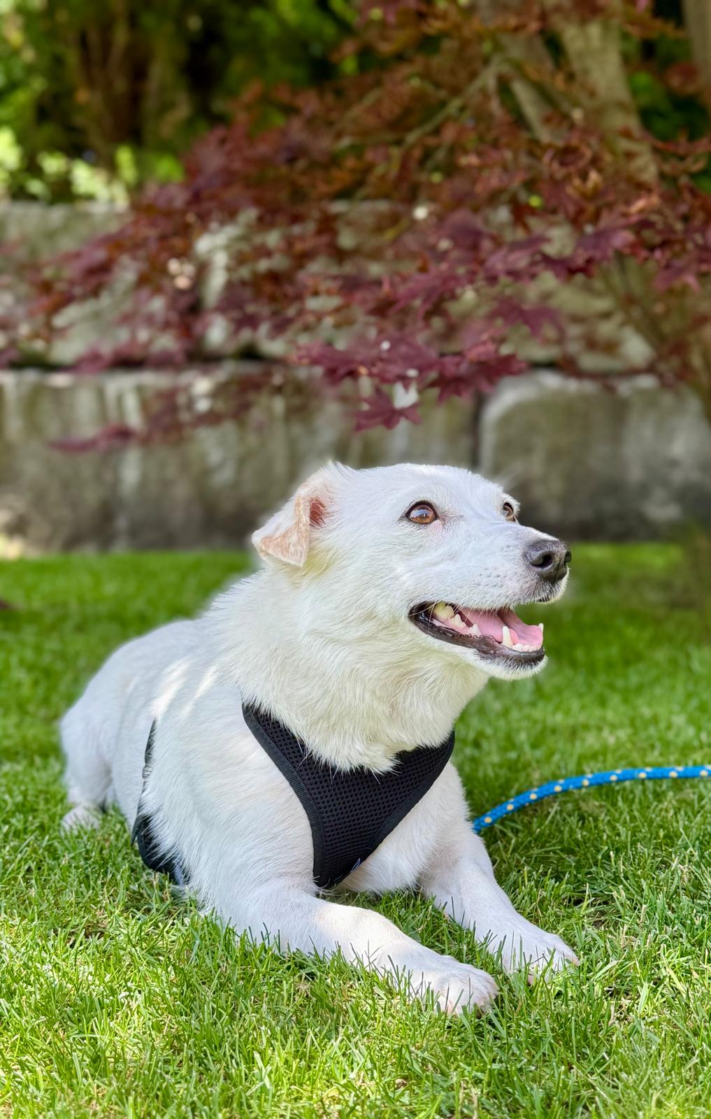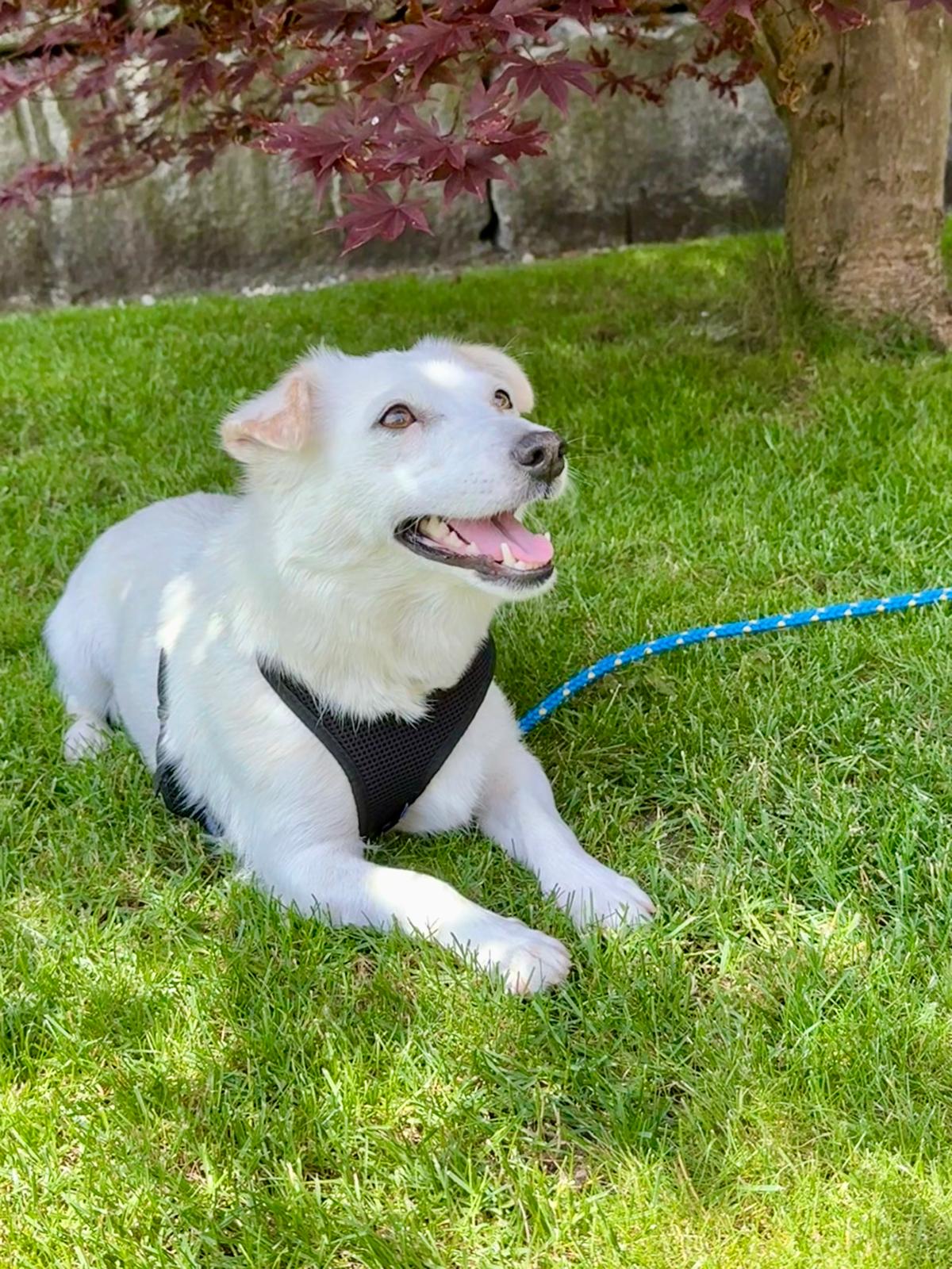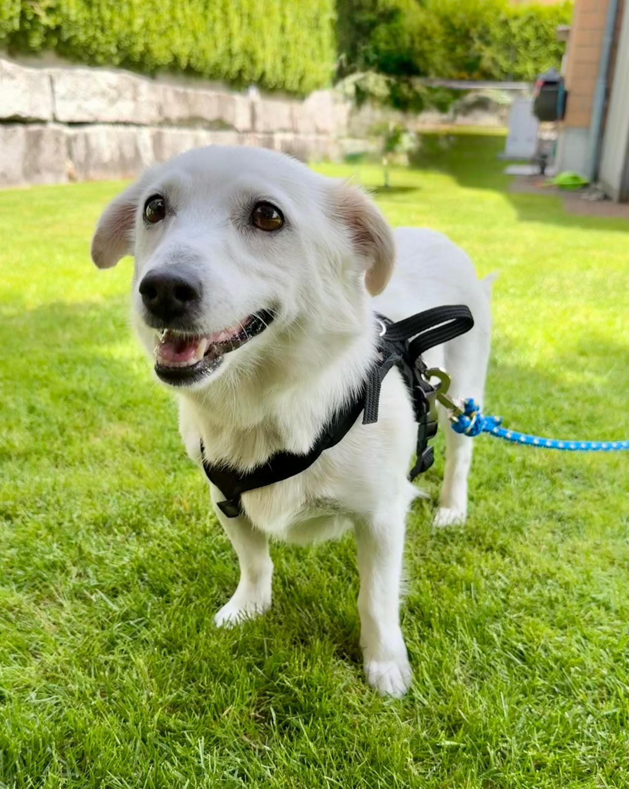 Mit anderen Hunden versteht sie sich gut, und auch Kinder sind für sie kein Problem. Sie ist freundlich, aufgeschlossen und zeigt sich im Alltag meist ausgeglichen – hin und wieder gibt es aber noch Neues, das sie verunsichert.