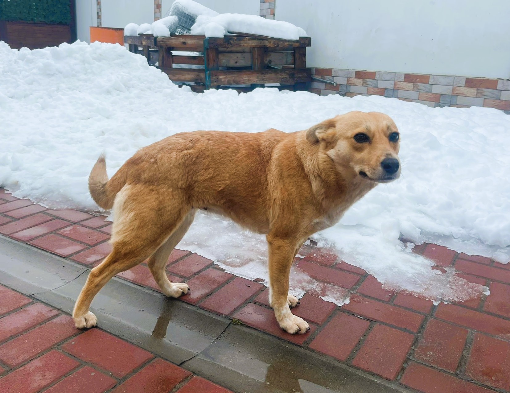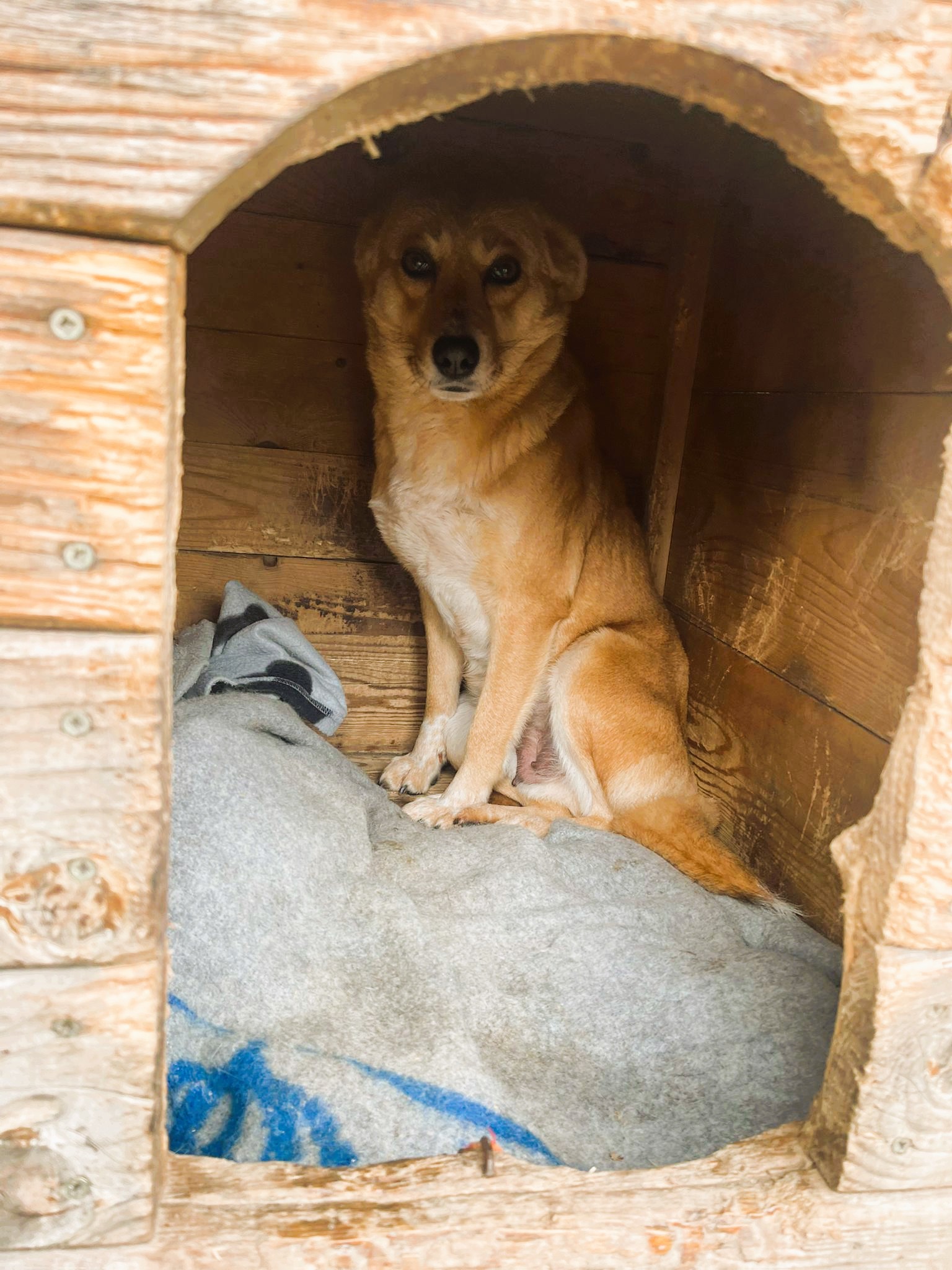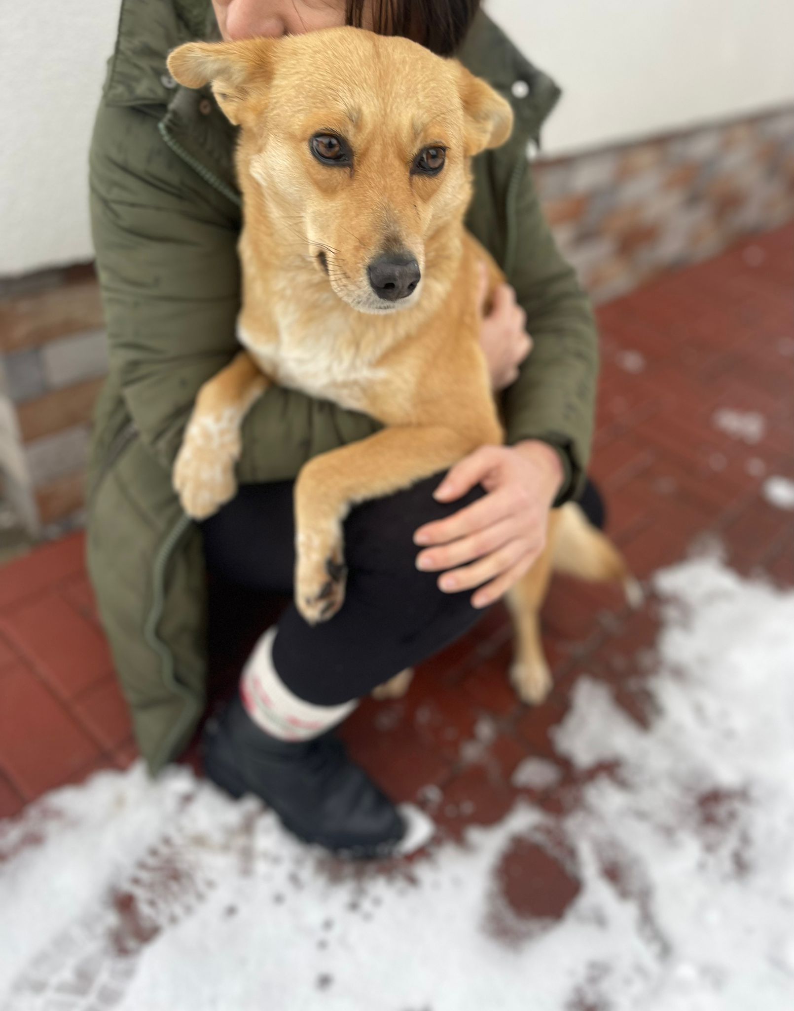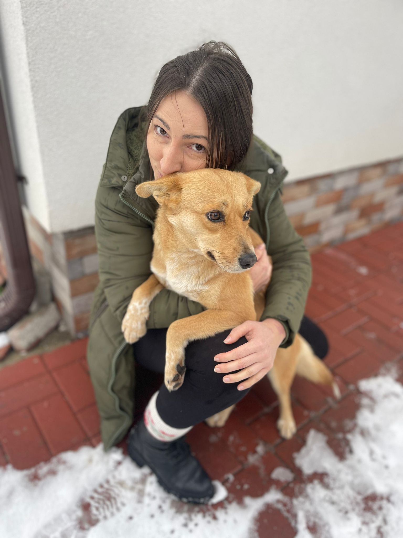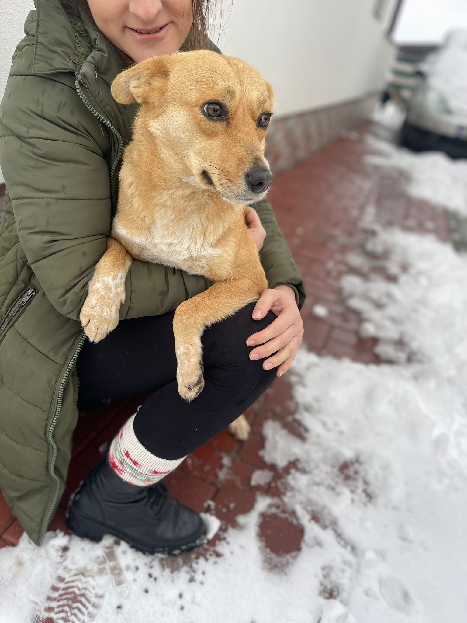 Rozi wurde von unserer Tierschützerin Daniela gerettet, nachdem sie die Hündin mehrere Wochen lang ganz allein auf einem Feld gesehen hatte. In Rumänien wurde es zu Beginn des Jahres bitterkalt, und Daniela konnte nicht länger zusehen.